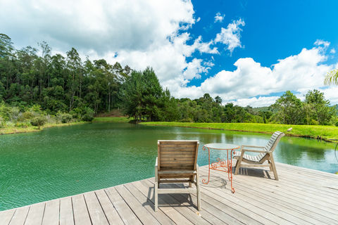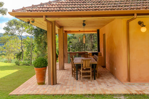 A casa fica dentro da nossa propriedade principal, a Roça Grossa, ao lado da nossa quadra de tênis e conta com muito verde, dentro de um sítio de 8 alqueires perfeito para caminhadas e contemplação.